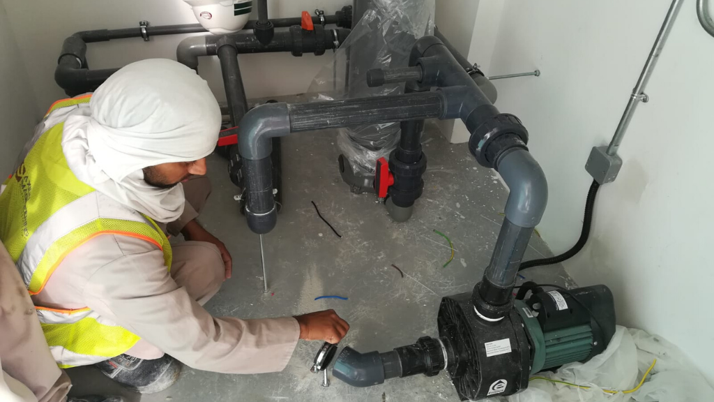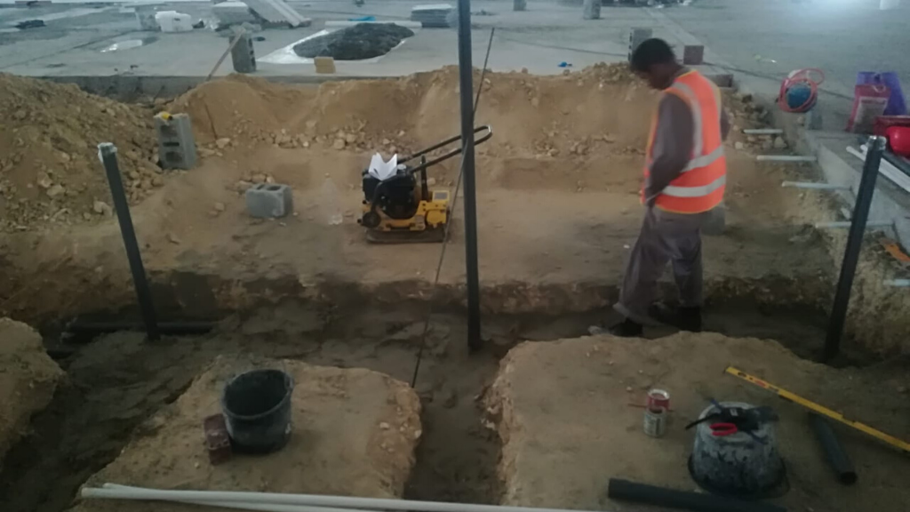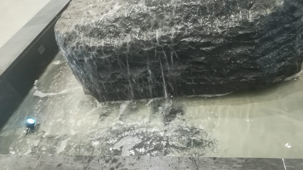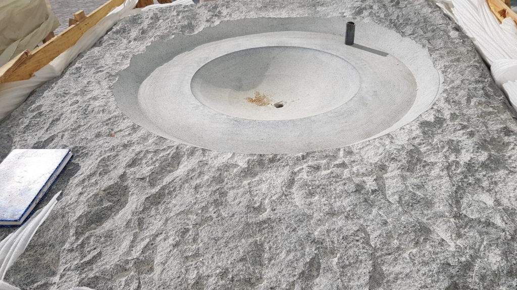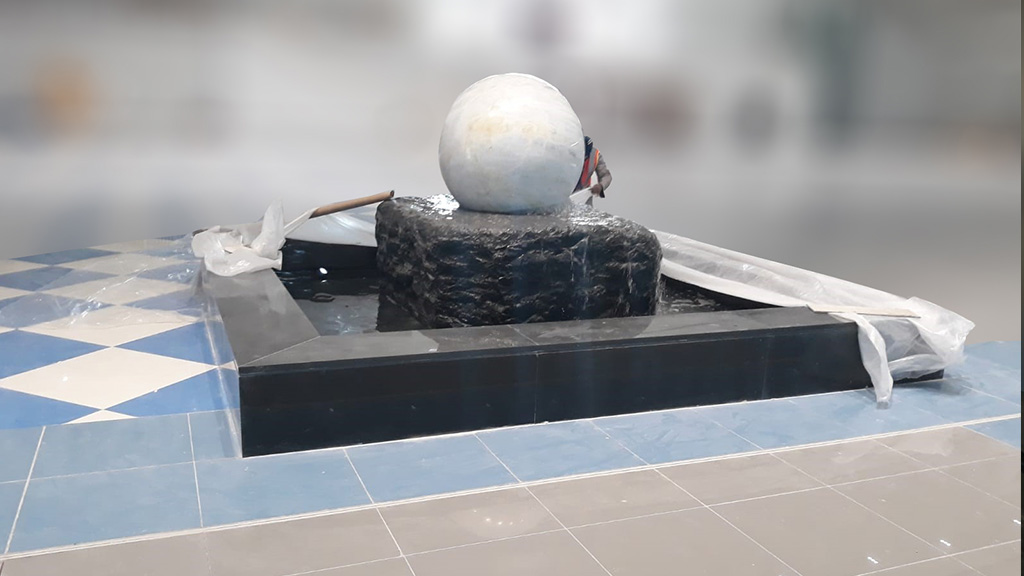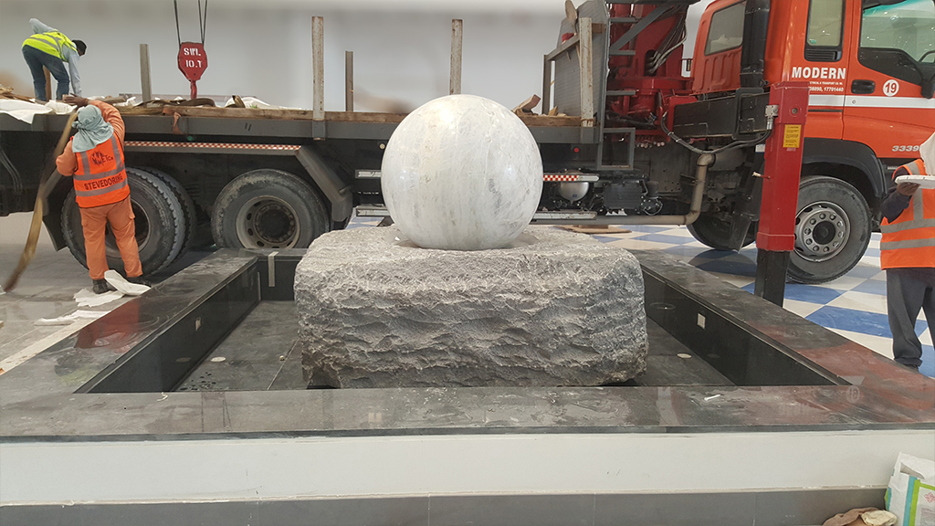 Design and build of water feature consisting of a large marble sphere rolling under the pressure of water.